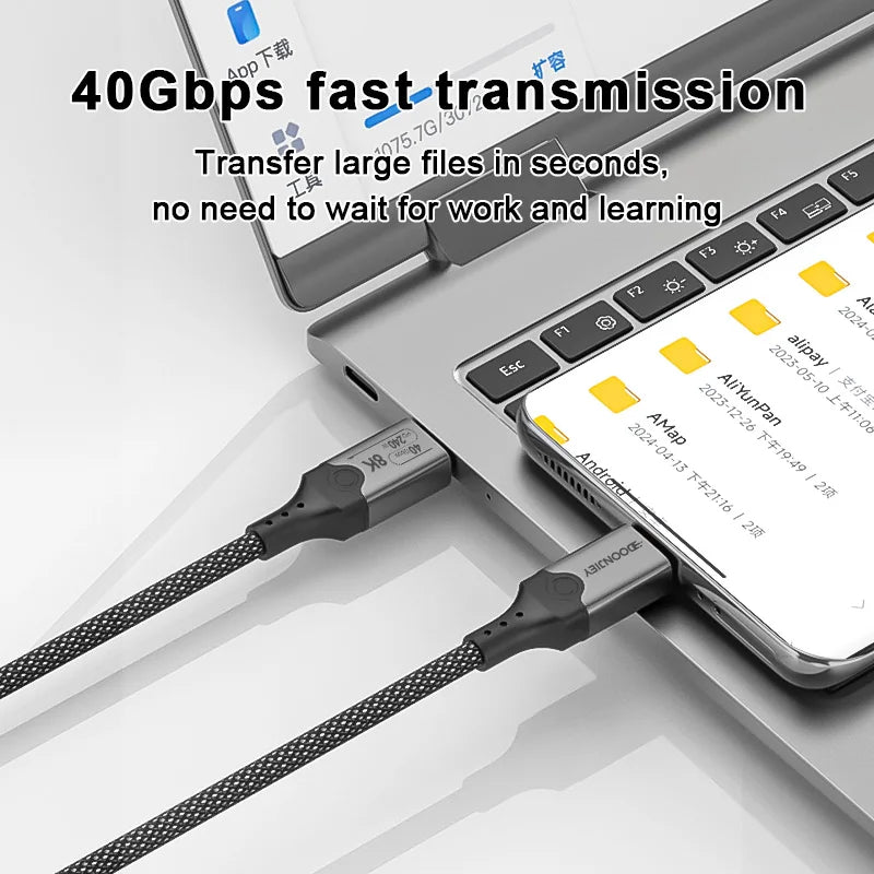 Kabllo Thunderbolt 4 USB-C është kabllo profesionale për karikim, transfer të dhënash dhe video me performancë shumë të lartë. E dizajnuar për pajisje moderne si laptopë, konzola, monitorë dhe aksesorë profesionalë, kjo kabllo mbështet standardin USB4 / Thunderbolt 4 për shpejtësi dhe stabilitet maksimal.