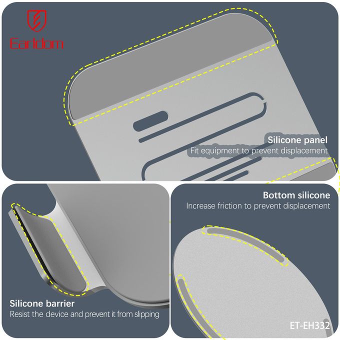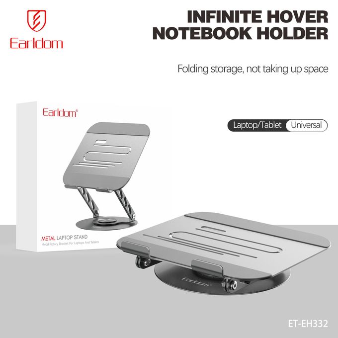Earldom EH332 është një mbajtës laptopi dhe tableti për tavolinë, i ndërtuar nga metal i fortë për stabilitet maksimal dhe përdorim afatgjatë. Falë rrotullimit 360° dhe dizajnit ergonomik, ky mbajtës përmirëson pozicionin e ekranit, redukton lodhjen e qafës dhe shpinës dhe krijon një ambient pune më komod dhe profesional.