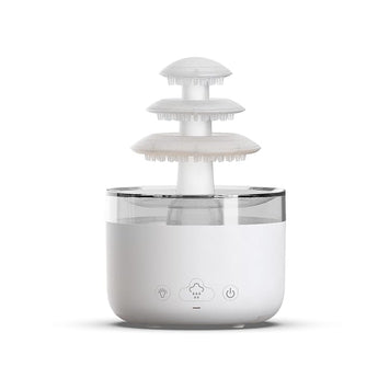 Cloud Rain Aromatherapy and Tranquilizer комбинира ароматерапија со релаксирачко осветлување и благ звук на капки вода за да создаде мирна и пријатна средина во вашиот дом или канцеларија. Овој елегантно дизајниран дифузор на арома со капки дожд и различни слоеви на пареа е идеален за десктоп употреба, нудејќи релаксирачко искуство.