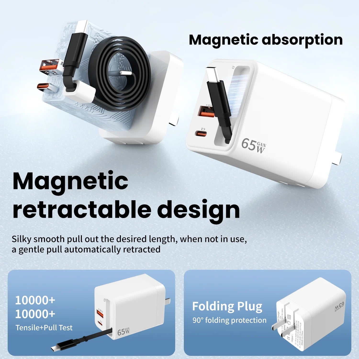Karikues muri (Adapter) GaN 65W me kabllo të integruar Type-C – versioni EU
