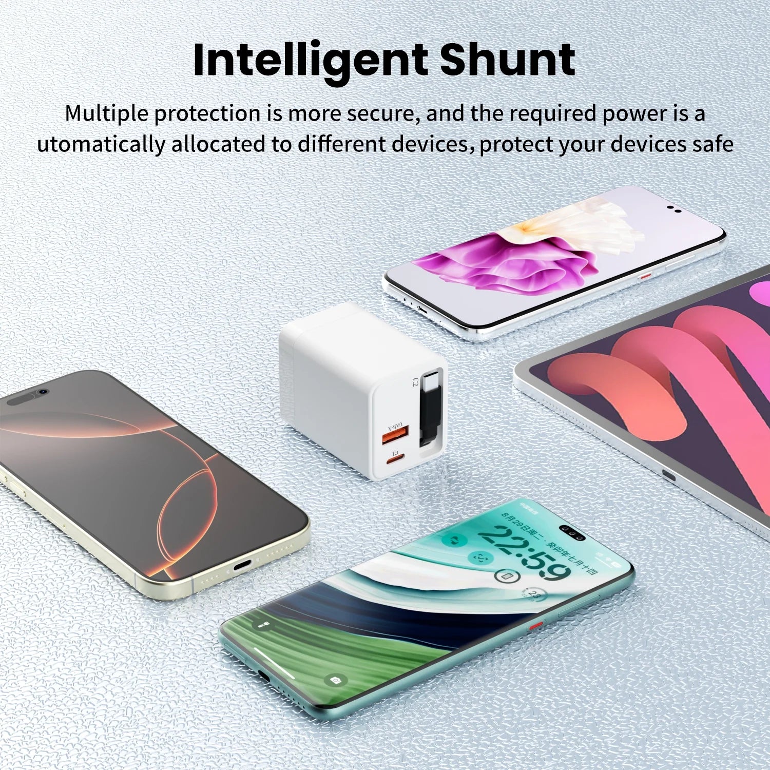 Multiport (USB-C + USB-A) – karikon njëkohësisht deri në 3 pajisje.