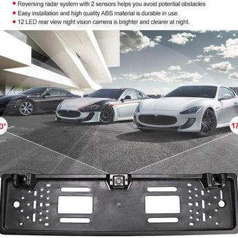 Mbajtëse targash europiane universale me kamerë parkimi me sensor radar 12V, 4/8 LED