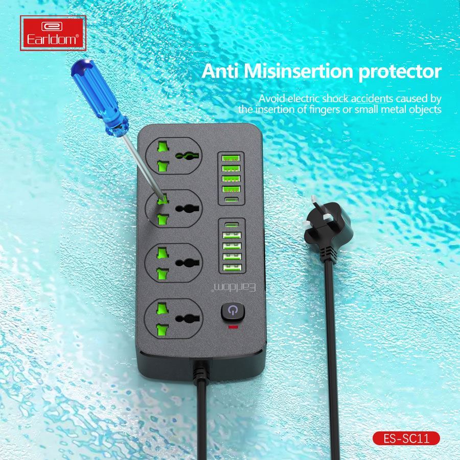 Earldom SC11 është kabllo vazhduese multifunksionale e fuqishme, e dizajnuar për të furnizuar dhe karikuar shumë pajisje njëkohësisht. Me 4 priza universale dhe 10 porta USB (8 USB-A + 2 USB-C), kjo zgjidhje është ideale për shtëpi, zyrë apo setup profesional.