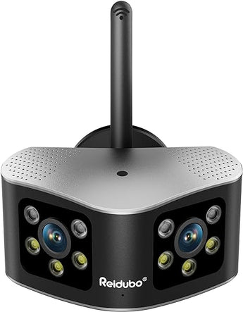【5MP(4096×1280)Lente të dyfishta & FoV ultra të gjerë】 Kamerat e sigurisë WiFi me lente të dyfishta Reidubo 4K të pajisura me dy lente mund të kombinojnë pa probleme dy imazhe në panoramë, një horizont më të gjerë të mbuluar dhe më pak shtrembërim, duke reduktuar funksionet e vëzhgimit si dy pika të verbëra. Kurseni paratë tuaja dhe ju bën të ndiheni të sigurt.