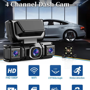 Kjo kamerë DVR me 4 kanale është një sistem i avancuar 360° multi-camera, i projektuar për të regjistruar çdo kënd të automjetit në 1080P Full HD. Ideale për taksi, furgona, transport mallrash, flotë kompanish si dhe për përdorim personal. Me modalitete të shumta regjistrimi, parkim inteligjent, sensore G-sensor dhe kamerë të brendshme + të jashtme, ky sistem siguron mbrojtje maksimale në çdo situatë.