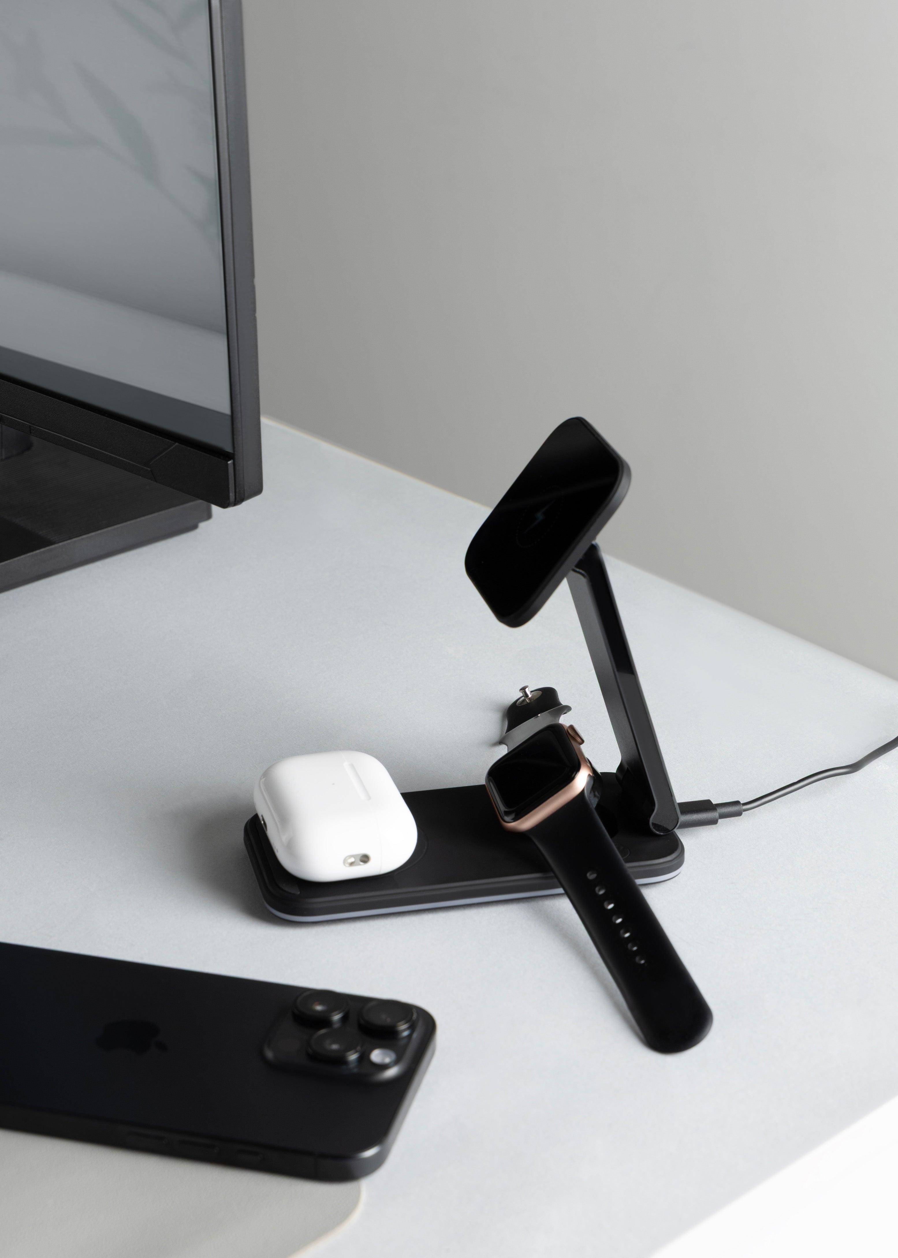 Karikon njëkohësisht telefonin, kufjet dhe orën inteligjente